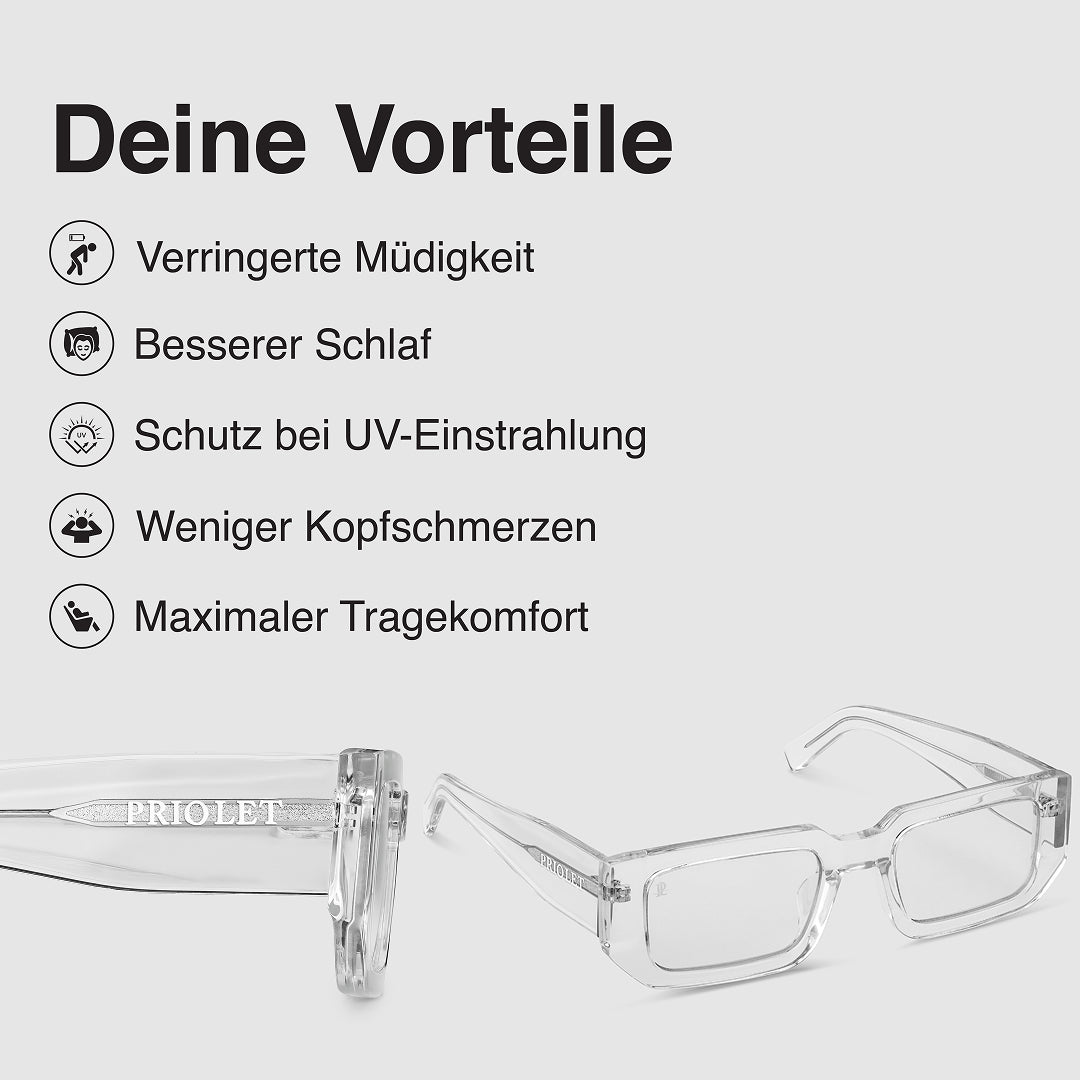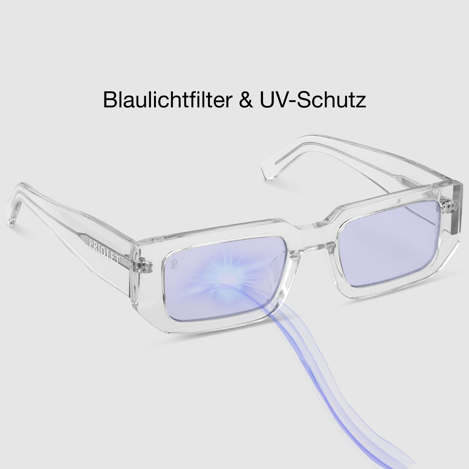 Alle unsere Brillen sind mit einem integrierten Blaulichtfilter ausgestattet, der deine Augen zuverlässig vor digitaler Belastung schützt.